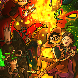 Ernesto de la Cruzs home town. My first Coco fanfiction. Miguel in a luchador mask climbs onto the bed arms raised.